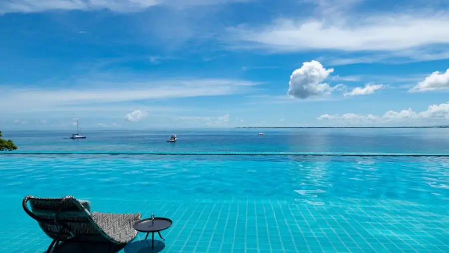 3단 인피니트풀장도 너무 예쁘고 바닷가와 함께 있어서 호캉스로 최고인 리조트예요! 선베드에서 먹는 햄버...