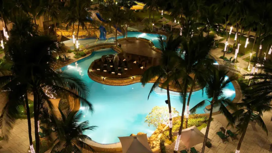시내와 좀 떨어져 있으나 수영장이 좋아서 유아나 아이들은 놀기 좋은 곳입니다. 다만 수영장은 다른 호텔 수영장에 비해서 넓다고 하나 세부의 j park 등과 비교하면 좁습니다. 그리고 들어갈때마다 가방검사 해서 먹을 것을 가져가지 못하는 것도 조금은 안 좋은듯....코타키나갔을때는 가게에게 맥주, 음료수 사가지고 수영하다가 먹고 재미있었는데 여기는 그러지는 못할 듯 합니다.