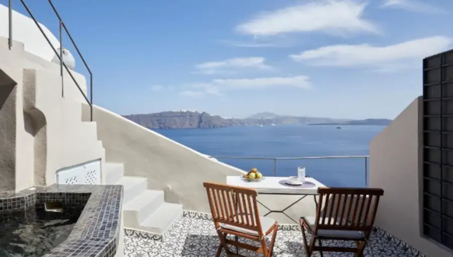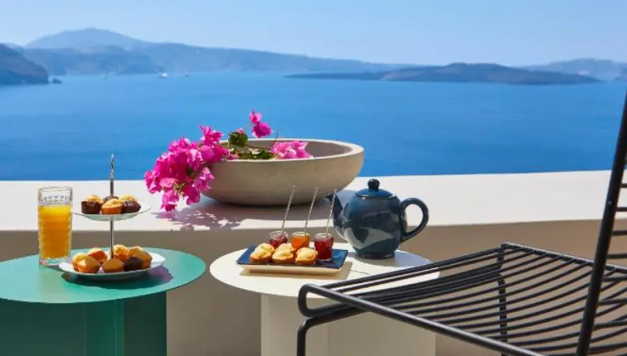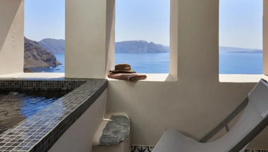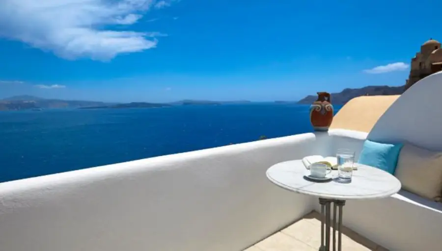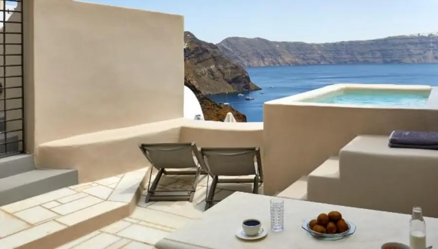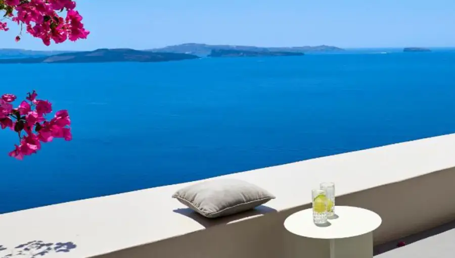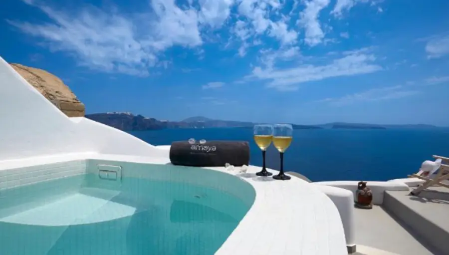 호텔은 산토리니 섬의 아름다운 풍경을 한눈에 볼 수 있는 위치에 자리하고 있습니다. 특히, 아마야 셀렉션 오브 빌라에서 바라보는 해질녘의 풍경은 아름다움으로 유명합니다.