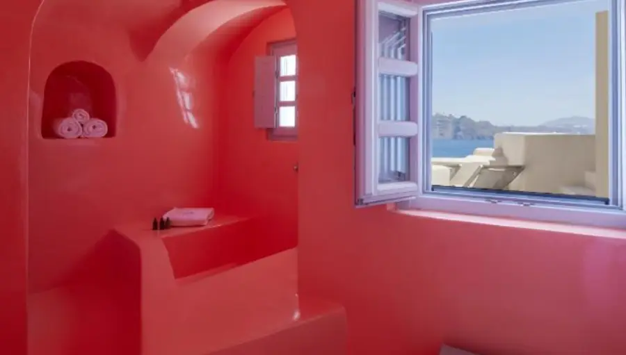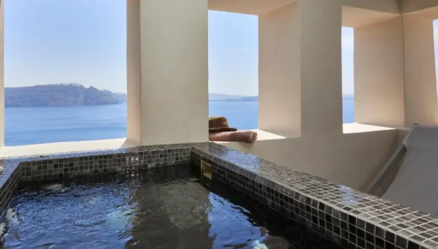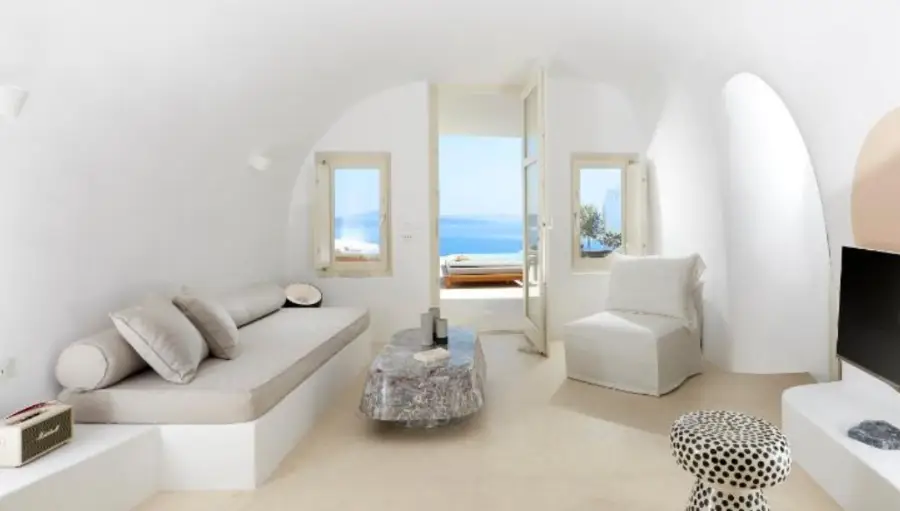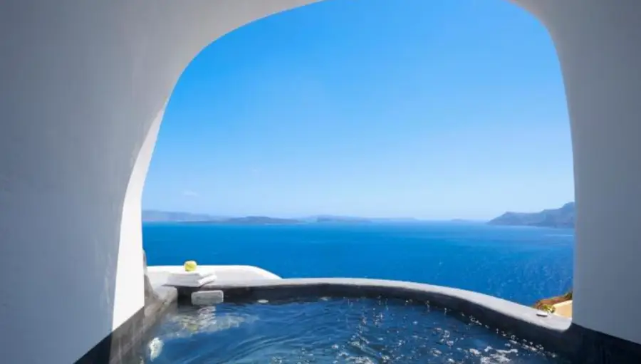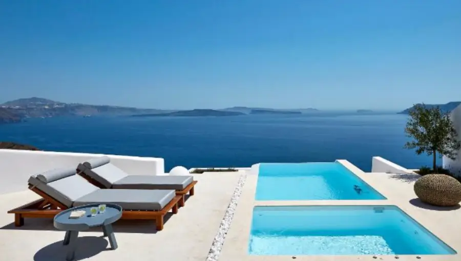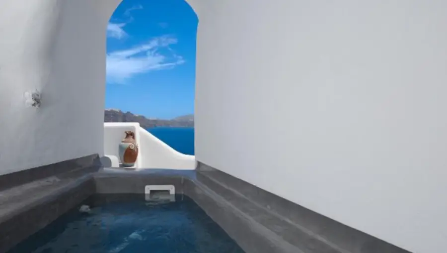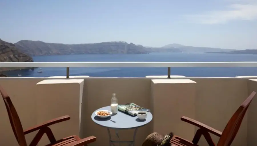 호텔은 산토리니 섬의 아름다운 풍경을 한눈에 볼 수 있는 위치에 자리하고 있습니다. 특히, 아마야 셀렉션 오브 빌라에서 바라보는 해질녘의 풍경은 아름다움으로 유명합니다.