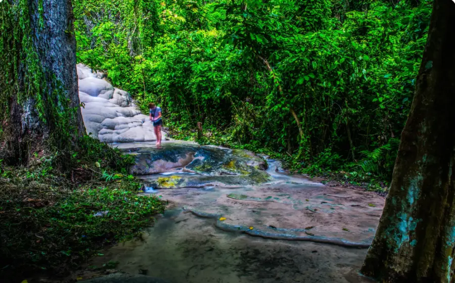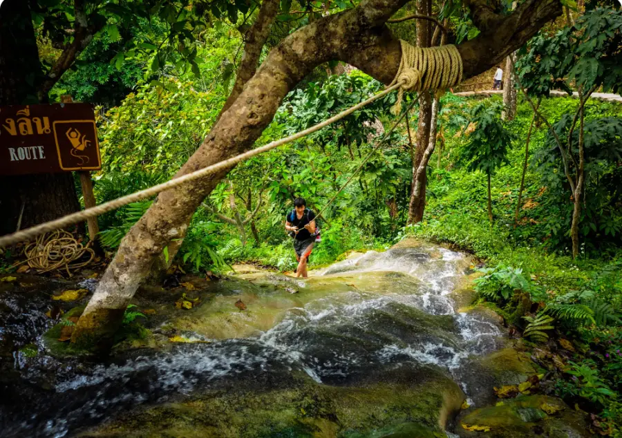 투어를 마무리하기 위해 Bua Tong 폭포로 향합니다. 방문자가 실제로 폭포를 올라갈 수 있기 때문에 끈적 폭포라고도합니다. 이것은 폭포 표면의 광물 퇴적물 때문인데, 이로 인해 폭포가 매우 미끄러워집니다. 숙소로 돌아가기 전에 다른 곳과 비교할 수 없는 경험을 위해 자유롭게 폭포를 올라가 보세요.