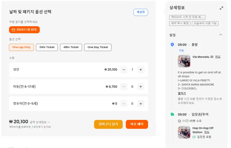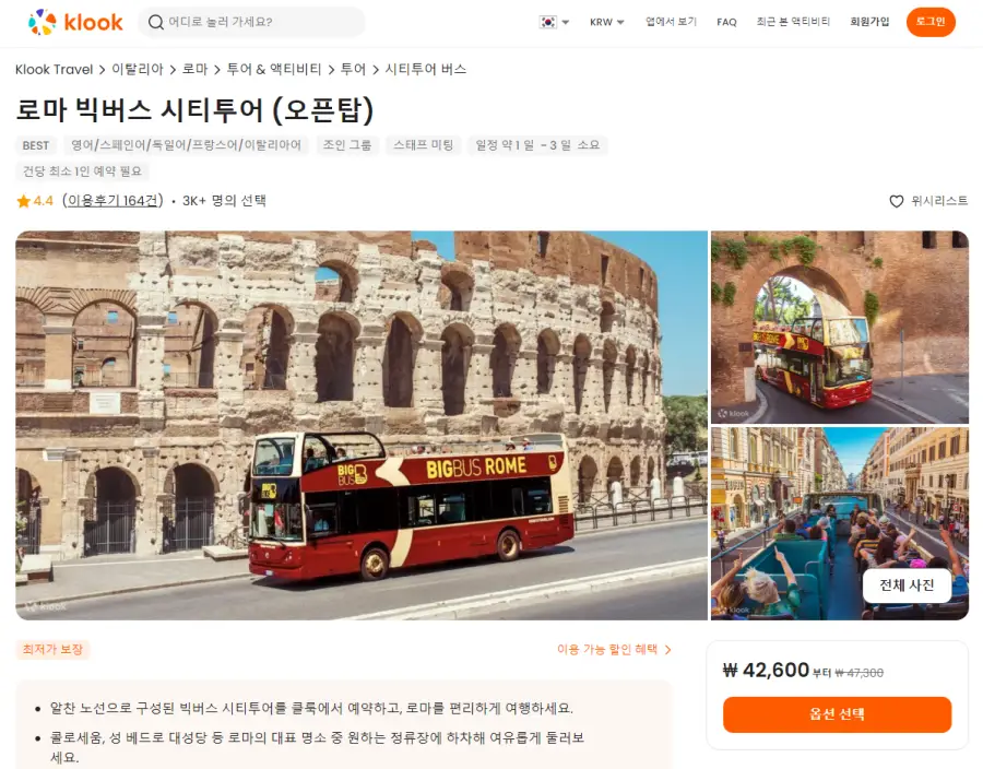 그리고 로마 빅버스 시티투어 (오픈탑)도 비슷한 시티투어 버스로 함께 참고 하여 원하는 투어버스를 이용하는 것도 좋습니다.