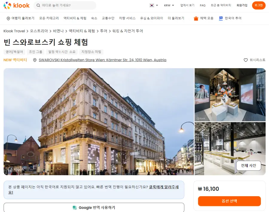 빈 스와로브스키 쇼핑 체험 가이드투어는 클룩사이트에서 쉽게 예약하실 수 있으며, 현재 할인된 금액에 이용하실 수 있습니다.