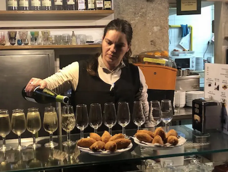 그린 와인 한 잔과 함께 유명한 포르투갈 대구 케이크를 맛보세요