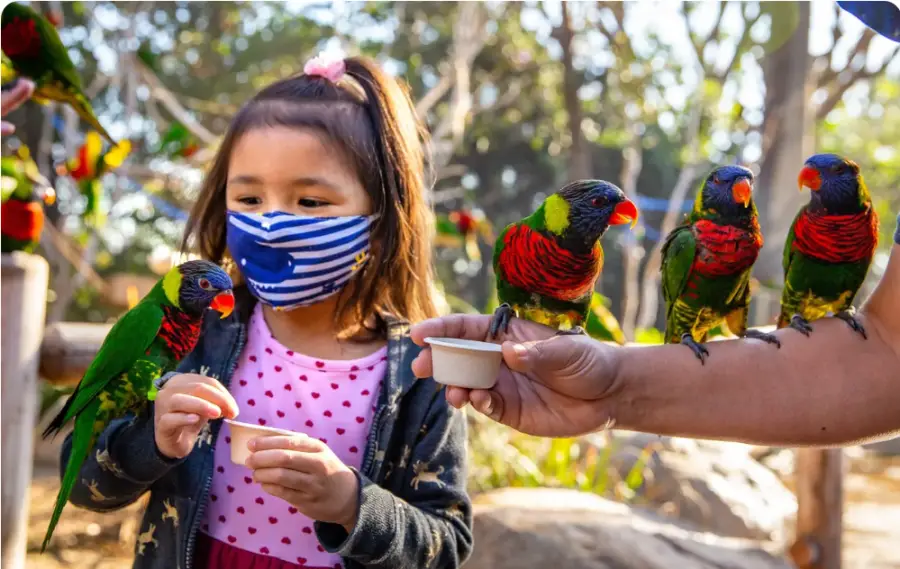 남부 캘리포니아에서 가장 큰 수족관을 발견하고 형형색색의 잉꼬새에게 손으로 먹이를 줄 수 있는 기회를 가지세요