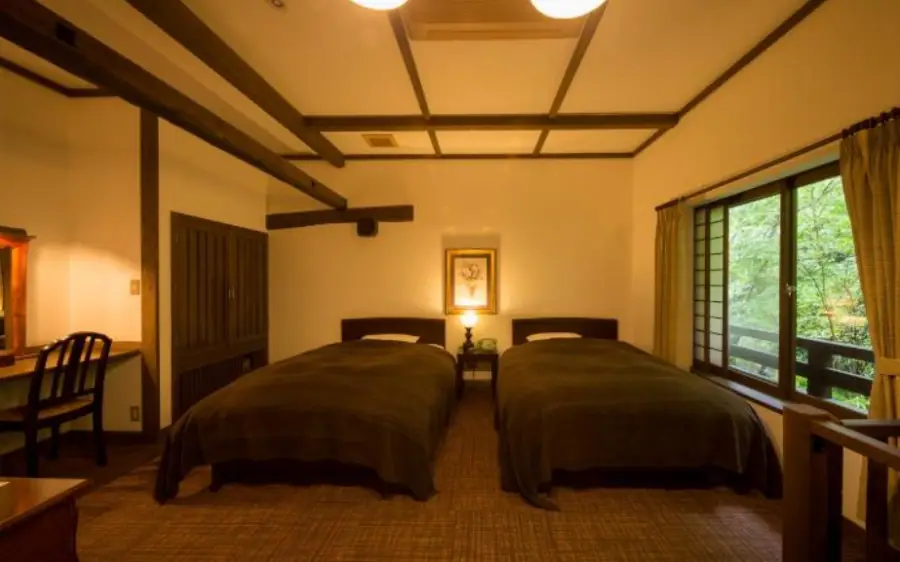역에서 매우 가깝고 역에서 내리막길 쭉 내려가기 편하고 돌아오는 길에 짐을 끌고 다니기가 조금 힘들 수도 있습니다. 총 8개의 방이 있고 강 옆에 호텔의 공용 공간인 로비와 도서관이 마음에 들고 토끼 장식이 너무 귀여워요! 온천은 반노천만 가능하며 자매관까지 도보로 5분 거리에 야외에 몸을 담글 수 있는 것도 괜찮습니다.가는 길에 경치를 감상하세요.