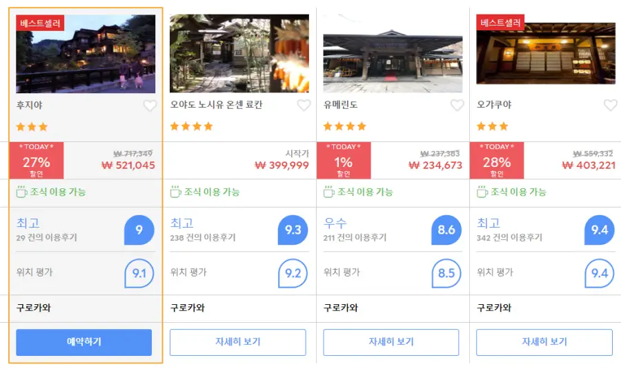 쿠로가와 료칸 후지야 (Fujiya)의 최저 가격대는 아고다웹사이트에서 할인특가 가격으로 매일매일 변동되며 10만원대부터 다양하게 형성됩니다. 날짜별로 매일 가격이 다르므로 아고다웹사이트 최저가를 확인하시려면 아래 링크를 누르시고 원하는 날짜의 가격대를 선택해야 정확한 가격을 자세히 보실 수 있습니다.