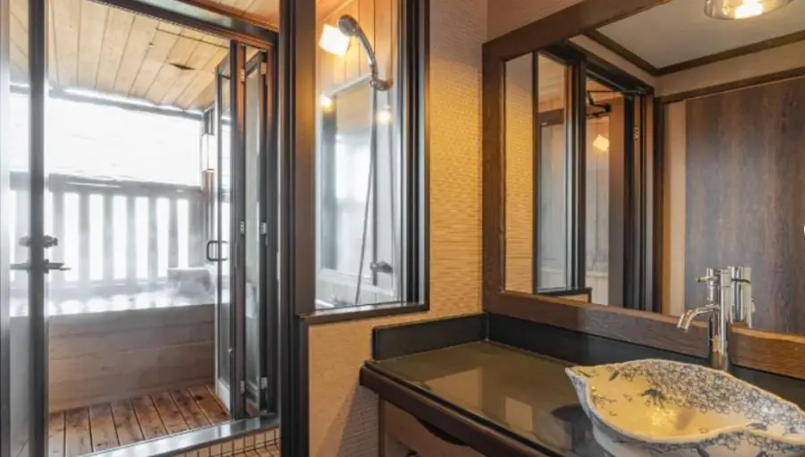 다른 편의 시설 만큼 욕실 편의 용품 또한 중요하기에 본 료칸에서는 일부 객실의 욕실 내에 세면도구, 타월, 목욕 가운 및 헤어 드라이어를 제공합니다.