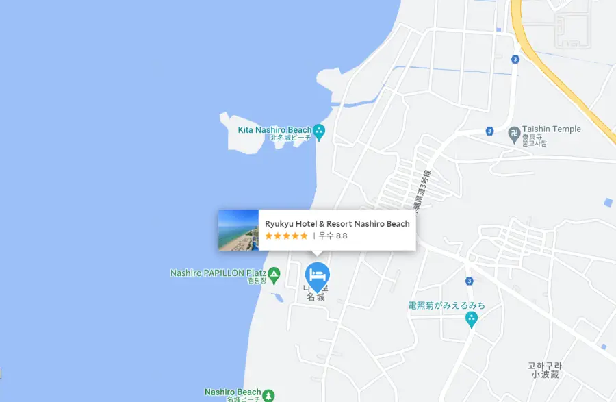류큐호텔앤리조트 나시로비치(Ryukyu Hotel & Resort Nashiro Beach)는 오키나와 공항에서 차로 약 1시간 거리에 위치해 있습니다. 호텔에서는 공항 픽업 서비스를 제공하고 있어, 편리하게 이동할 수 있습니다. 또한, 호텔 주변에는 오키나와의 주요 관광지와 쇼핑 센터, 레스토랑 등이 있어, 여행의 다양한 경험을 즐길 수 있습니다.