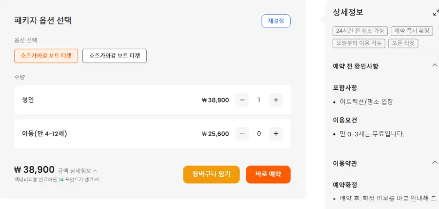 바우처는 승선 장소에서 환불하실 수 없습니다.