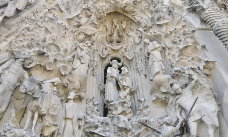 사그라다 파밀리아는 세 개의 입구를 가지고 있으며, 각 입구는 성경의 이야기를 상징합니다. 탄생 입구는 예수의 탄생을 묘사하고 있으며, 영광 입구는 예수의 부활을 상징합니다. 고난 입구는 예수의 순교를 묘사하고 있습니다.