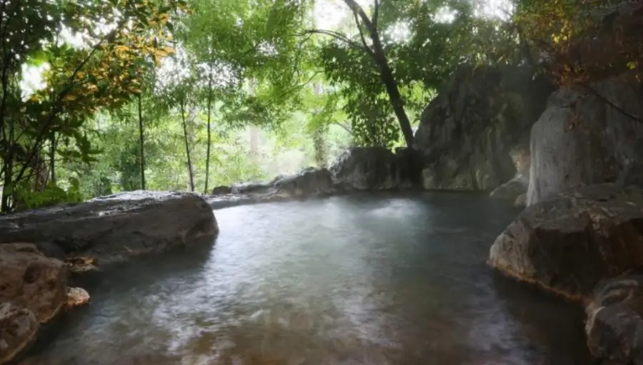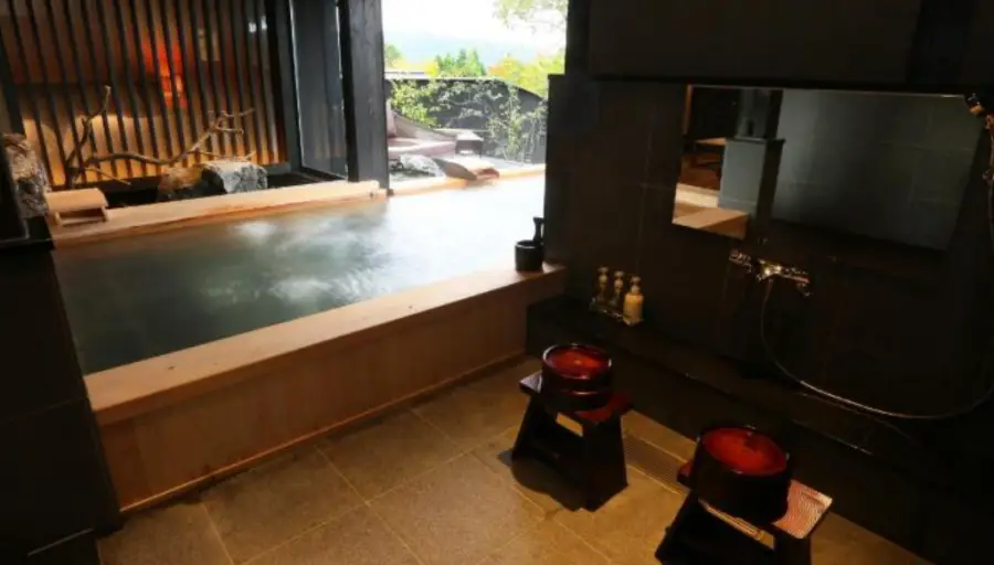 료칸 구로카와 온센 고쇼 게코지유(Kurokawa Onsen Gosyo Gekkoujyu) 이 곳의 가장 큰 특징은 바로 자연과 어우러진 온천입니다. 손님들은 실내외 온천 중 선택하여 이용할 수 있으며, 실내 온천은 일본 전통 스타일의 욕조에서 목욕을 즐길 수 있습니다. 실외 온천은 자연 그대로의 풍경을 즐기며 목욕을 할 수 있습니다.