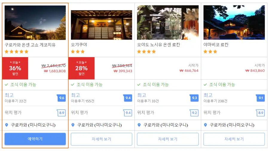 구로카와 온센 고쇼 게코지유 (Kurokawa Onsen Gosyo Gekkoujyu)의 최저 가격대는 아고다웹사이트에서 할인특가 가격으로 매일매일 변동되며 10만원대부터 다양하게 형성됩니다. 날짜별로 매일 가격이 다르므로 아고다웹사이트 최저가를 확인하시려면 아래 링크를 누르시고 원하는 날짜의 가격대를 선택해야 정확한 가격을 자세히 보실 수 있습니다.