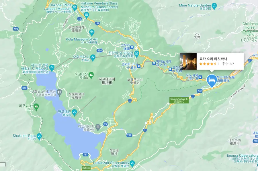 1. 하코네유모토역 버스정류장에 있는 인포메이션 센터에(한국인 직원 있음) '아우라 타치바나에 전화 해주세요' 하면 5분도 안되서 셔틀버스가 데리러 옴 2. 직원들 진짜 친절함. 일단 로비 입구 들어가는 순간 물이 흘러내려오는 장식품에서 분위기 압살. 3. 방 깨끗하고 쾌적함. 등급이 높지 않은 방인데도 좋았음. 엘리베이터 있음. 4. 개별탕이 없고 대욕탕을 쓰는 방이었음. 개별탕 있는 사람들은 다 방에서 개별탕 쓰는지 대욕탕 넓은데 우리 가족끼리만 쓸수있음. 짱. 대욕탕에도 노천온천 붙어 있어서 거기에만 있었음. 안에 샴푸,린스,바디워시,드라이기 기타등등 다있음. 수건만 방에서 들고 가면됨. 5. 방 온도 쉽게 조절 가능함. 좋음. 다소 건조함. 그런데 이건 라디에이터로 난방하면 어쩔수없음. 6. 조식 맛있음. 건강한 음식으로 나옴. 맵고 자극적인거 좋아하면 안 맞을수도(그런데 이런 사람은 료칸 요리 자체가 안 맞을듯). 직원들 친절하고 밥이랑 장국 무한 리필임. 주는것만 먹어도 배터짐.