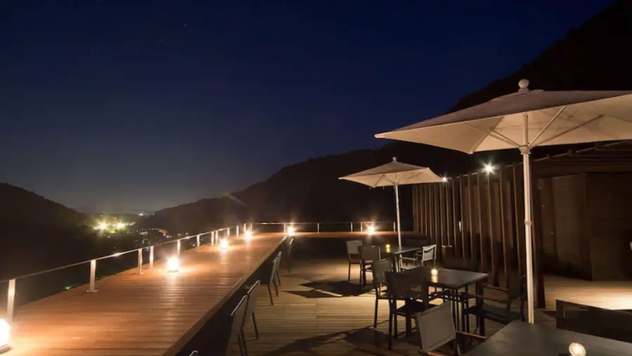 숙소는 기차역에서 도보로 15분입니다. 셔틀버스도 있어서 미리 전화하거나, 체크아웃할때는 11시 전까지는 체크아웃하고 얘기하면 아무때나 셔틀 탈수있습니다! (셔틀로 5분). 저녁식사는 너무 맛있었고 같은 테이블에서 아침식사를 하면 됩니다. 저녁에 비해서 아침식사는 퀄리티가 덜하지만 그래도 만족스러운 식사였습니다. 비싼방으로 안가셔서 방에 욕조가 없으면 3만원 추가비용을 내고 루프탑에있는 프라이빗 욕조를 체크인할때 원하는 시간을 말씀하시면 개인적인 온천타임을 갖으실수 있습니다. 뷰는 다른 비싼 숙소보다 좋지 않을수있지만 너무 기억에 남는 여행이였습니다~~