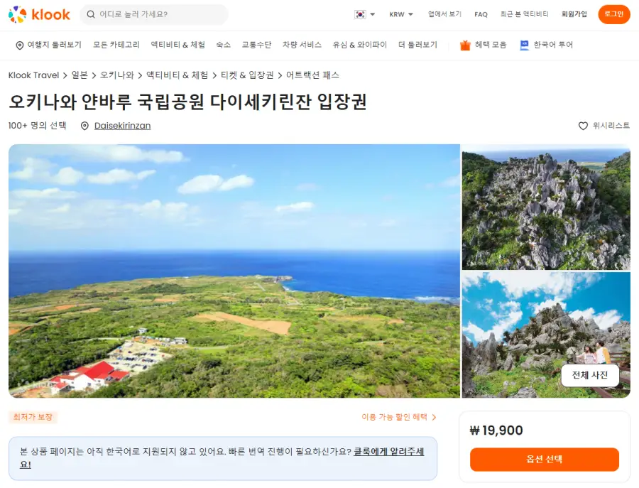 오키나와 얀바루 국립공원 다이세키린잔 입장권은 클룩사이트에서 쉽게 예약하실 수 있으며, 현재 할인된 금액에 이용하실 수 있습니다.