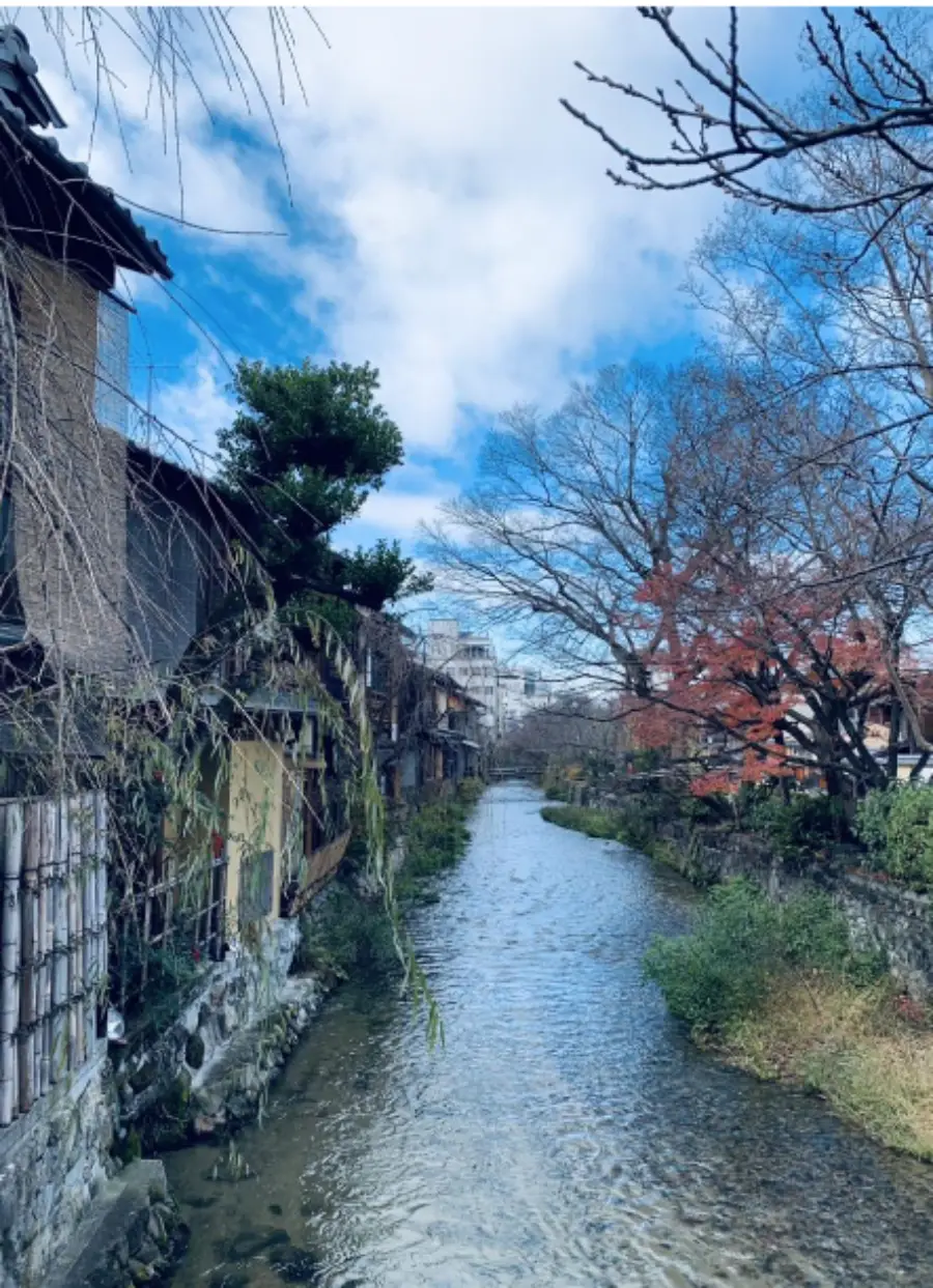 가모가와 강을 거닐며 교토의 역사를 배웁니다.