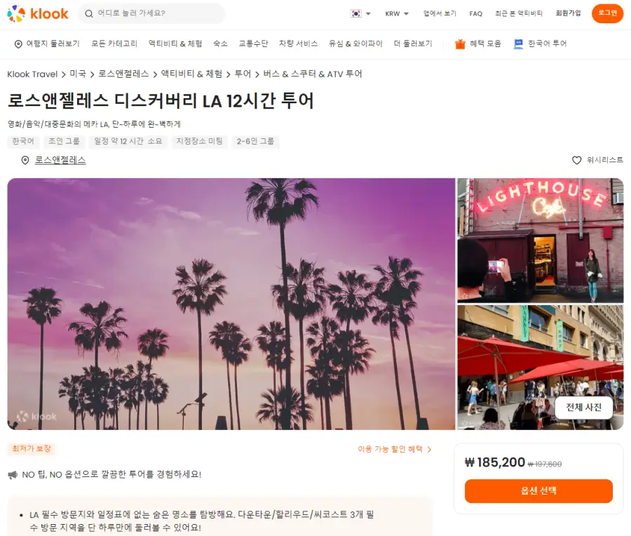 로스앤젤레스 디스커버리 LA 12시간 투어는 클룩사이트에서 쉽게 예약하실 수 있으며, 현재 할인된 금액에 이용하실 수 있습니다.