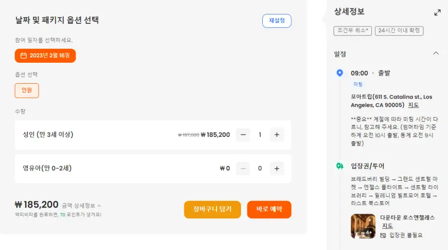 픽업/드랍 서비스 이용 : 픽업 $30/1곳, 드랍 $30/1곳(LA CITY, 기타지역 별도문의)