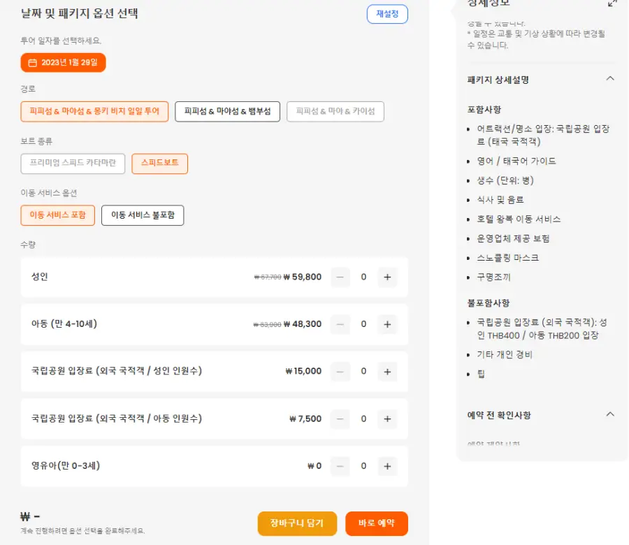 스피드보트와 이동 서비스 포함 패키지
