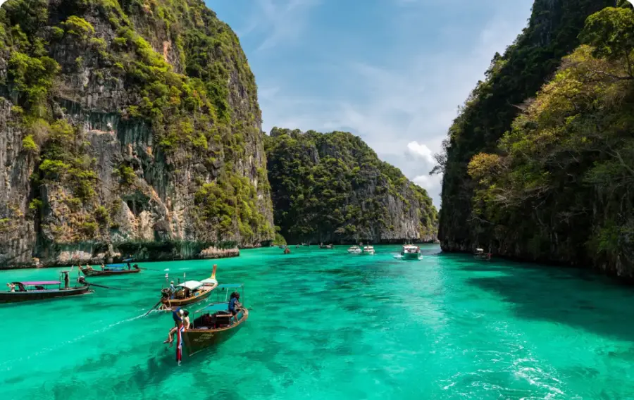 영화 '더 비치'의 촬영지로도 알려진 마야 베이의 에메랄드 빛 바다를 감상해 보실 수 있으며 바이킹 동굴과 필레이 베이 등도 볼 수 있어요. 몽키 베이에서는 장난기 가득한 원숭이들을 만나보실 수 있고요 ~~