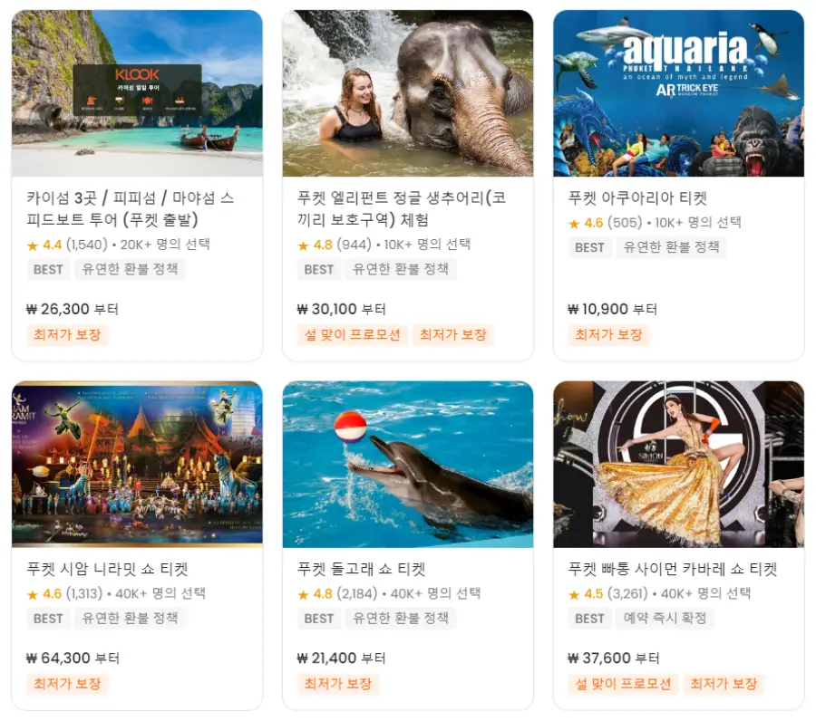 푸켓자유여행 필수 패키지 할인 이용권 / 태국 푸켓에서 이용해야하는 가성비 좋은 투어, 어트랙