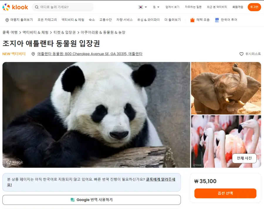 조지아 애틀랜타 동물원 입장권은 클룩사이트에서 쉽게 예약하실 수 있으며, 현재 할인된 금액에 이용하실 수 있습니다.