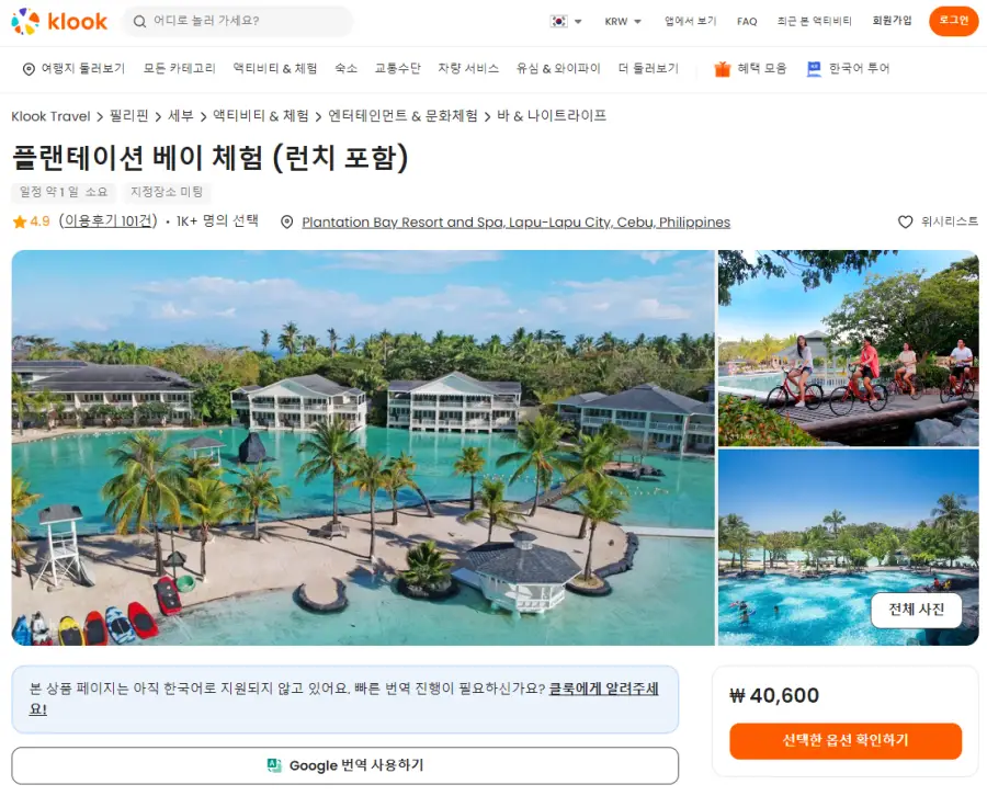 플랜테이션 베이 체험 (런치 포함) 패키지와 플랜테이션 베이 리조트 스파 체험은 클룩사이트에서 쉽게 예약하실 수 있으며, 현재 할인된 금액에 이용하실 수 있습니다.
