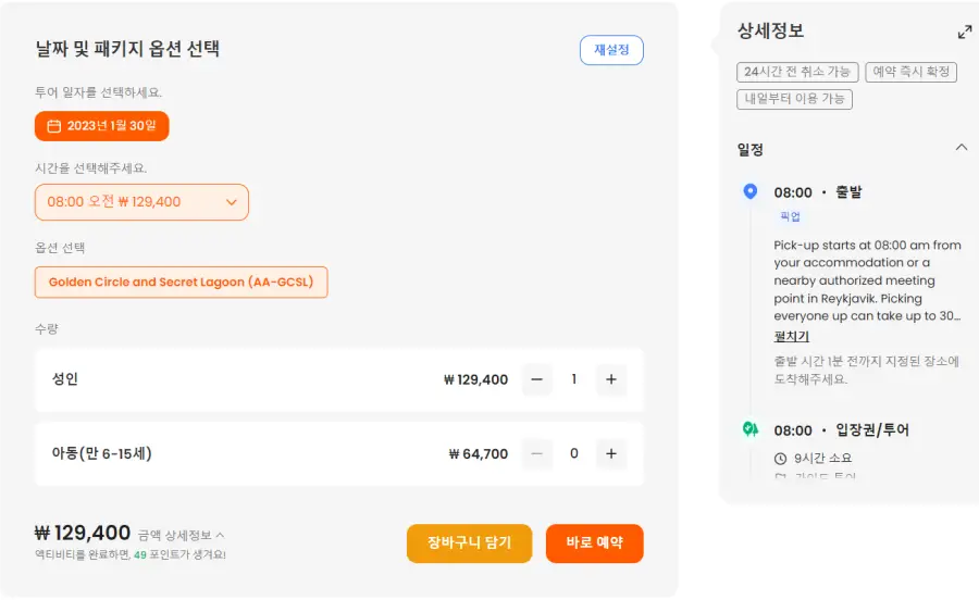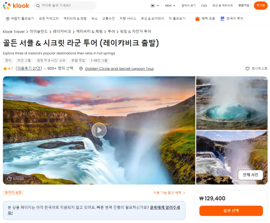 레이캬비크출발 시크릿라군과 골든서크 일일투어는 클룩사이트에서 쉽게 예약하실 수 있으며, 현재 할인된 금액에 이용하실 수 있습니다.