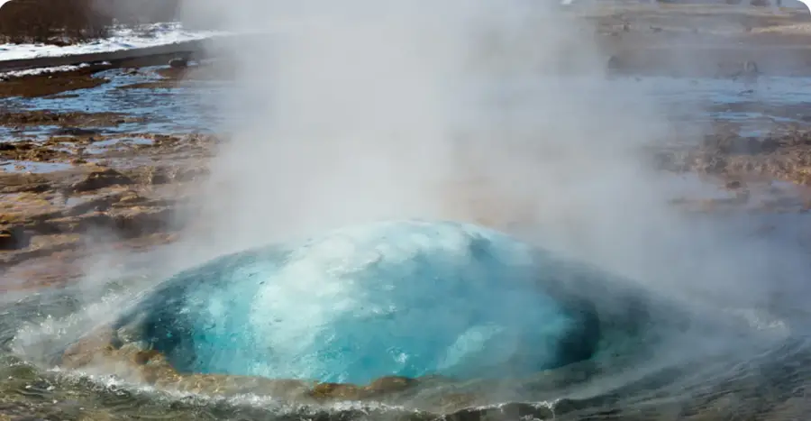 공원을 둘러본 후에는 유명한 게이시르 온천 지역으로 이동하게 됩니다. 거기에서 때때로 40미터 높이까지 솟아오르는 물로 유명한 게이시르를 둘러싸고 있는 거품이 이는 온천 사이를 걸을 수 있습니다.
