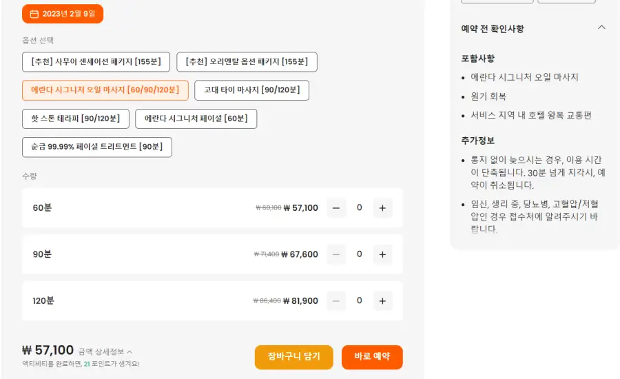 에란다 시그니처 오일 마사지 [60/90/120분] 포함사항