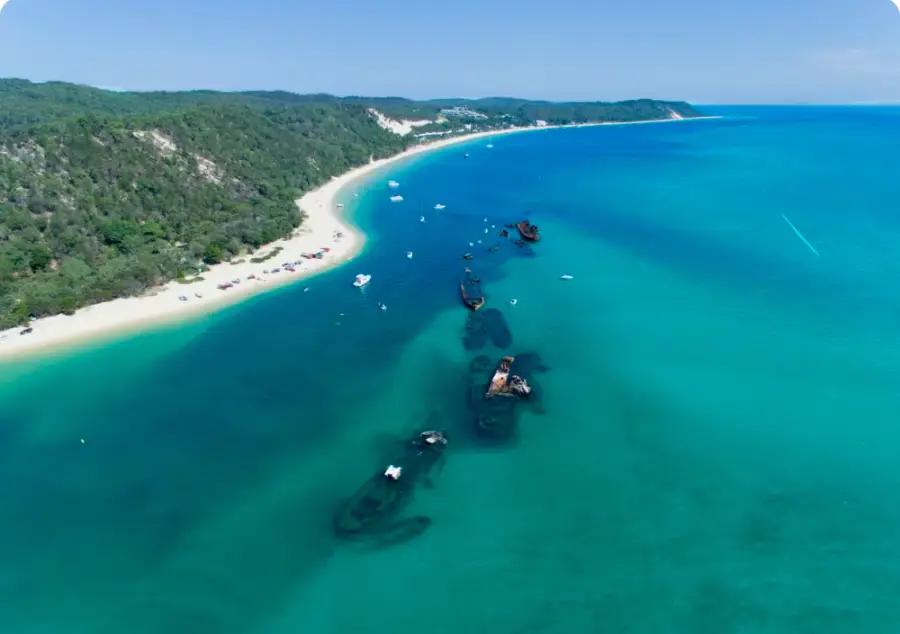 V. 브리즈번 또는 골드 코스트에서 출발하여 숨이 멎을 듯 아름다운 모턴아일랜드(Moreton Island)로 흥미진진한 당일 여행을 떠나세요.