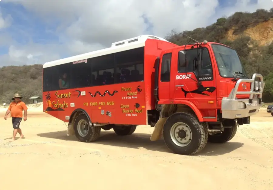 4륜구동 '터프 버스'를 타고 모튼 섬의 험준한 4륜구동 트랙을 '사막'까지 여행하세요.