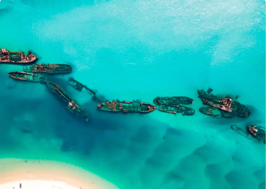 V. 두 가지 투어 옵션으로 모튼 아일랜드를 탐험하세요 - 경치 투어 또는 난파선 투어 중에서 선택하세요.