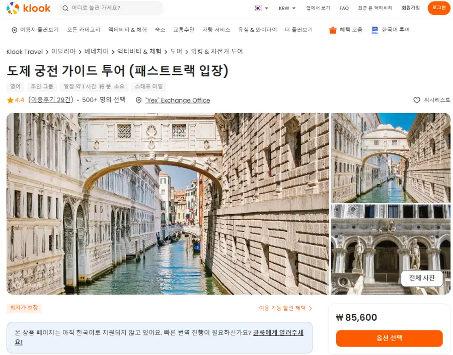 베니스여행 도제 궁전 패스트트랙 입장이 포함된 가이드 현지투어추천