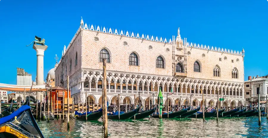 베니스에 있는 많은 아름다운 건축 아이콘 중에서 두칼레의 궁전(도제의 궁전)만큼 중요한 것은 거의 없습니다. 베네치아 고딕 건축의 이 뛰어난 정점은 베니스 자체의 상징으로 서 있으며 세계에서 가장 아름다운 건축물 중 하나로 널리 알려져 있습니다.