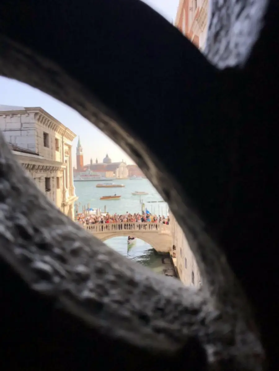 또 다른 주목할 만한 공간은 두칼레 궁전의 감옥입니다. 이 곳은 베니스의 유명한 연인 카사노바가 억류되었던 장소로 알려져 있습니다. 이 감옥은 궁전과 다리로 연결되어 있으며, 이 다리를 건너면서 죄수들이 마지막으로 세상을 바라보았다고 전해져 오는 '쉿의 다리'가 있습니다.