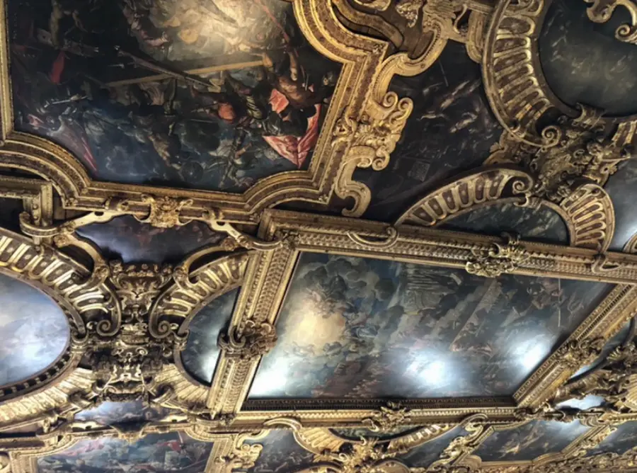 두칼레 궁전에서 가장 인상적인 부분 중 하나는 대회의실입니다. 이곳은 베니스 공화국의 중요한 결정들이 내려진 장소로, 베니스의 힘과 영향력을 상징하는 공간입니다. 벽면은 티치아노의 대작인 '파라다이스'를 비롯한 수많은 거장들의 작품으로 장식되어 있습니다.