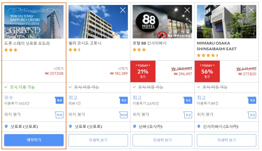 오도리역호텔 도큐 스테이 삿포로 오도리 (Tokyu Stay Sapporo Odori)의 최저 가격대는 아고다웹사이트에서 할인특가 가격으로 매일매일 변동되며 10만원대부터 다양하게 형성됩니다. 날짜별로 매일 가격이 다르므로 아고다웹사이트 최저가를 확인하시려면 아래 링크를 누르시고 원하는 날짜의 가격대를 선택해야 정확한 가격을 자세히 보실 수 있습니다.