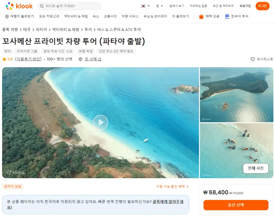 파타야 출발 코사메산(koh samae san) 프라이빗 차량 투어는 클룩사이트에서 쉽게 예약하실 수 있으며, 현재 할인된 금액에 이용하실 수 있습니다.