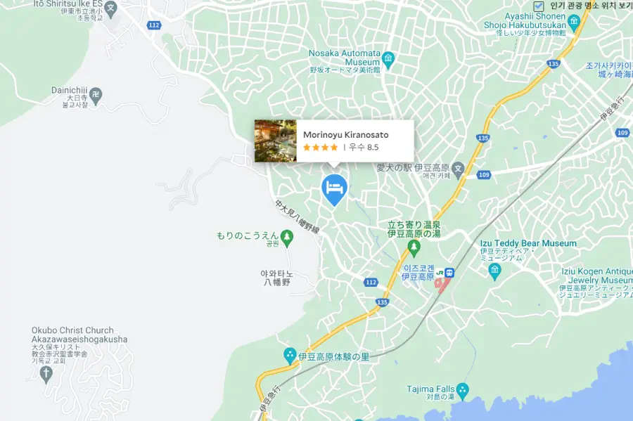 총 7개의 서로 다른 대중목욕탕과 3개의 개인 온천을 모두 체험할 수 있습니다! 가이세키 저녁 식사와 일본식 아침 식사는 맞춤형 서비스로 즐기실 수 있으며 료칸과 가까운 역 사이 호텔셔틀을 운행하고 있습니다. 그리고 도쿄에서 아타미역으로 가는방법은 도쿄역에서 JR도카이도 신칸센을 타고 아타미역에서 하차하시면 됩니다. 시간은 약 50분 ~ 1시간 정도 소요됩니다. 아타미료칸 모리노유 키라노사토 (Morinoyu Kiranosato)에서 가까운 역은 JR 이즈코겐역입니다.