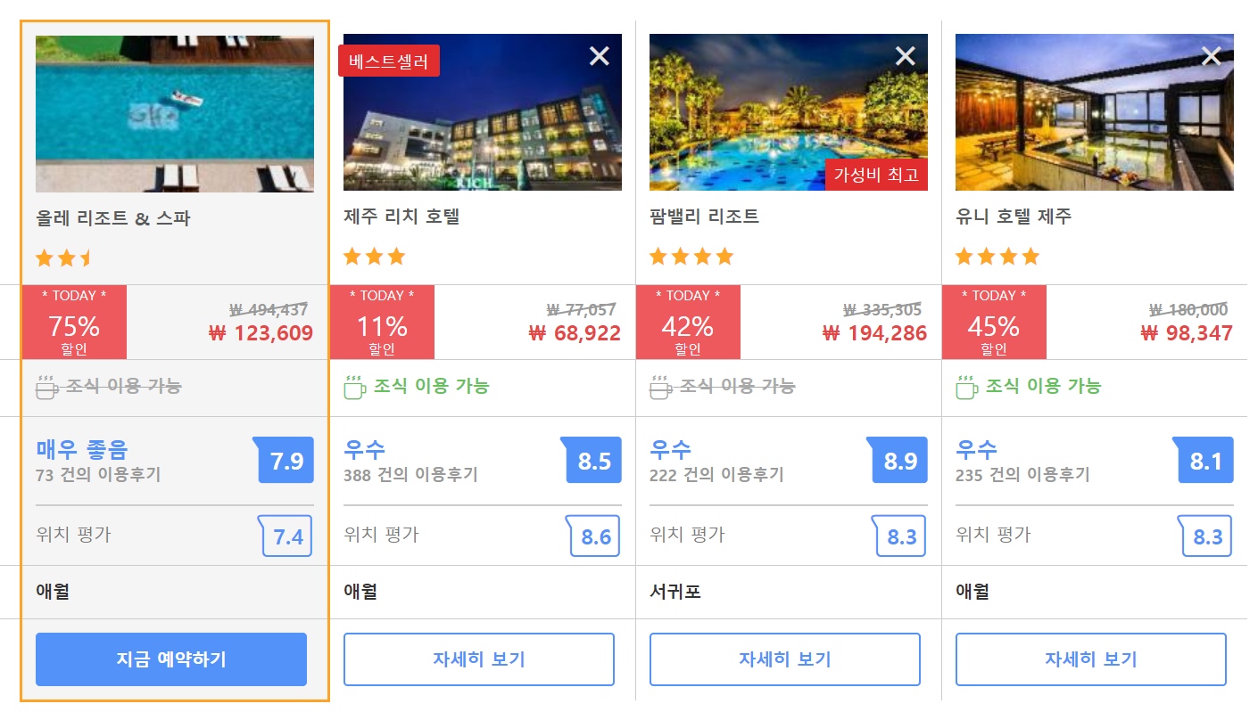 제주 올레 리조트 & 스파 (Olle Resort and Spa)의 최저 가격대는 아고다에서 할인특가 가격으로 매일매일 변동되며 20만원대부터 다양하게 형성됩니다. 아고다 최저가를 확인하시려면 아래 링크를 누르시면 원하는 날짜의 가격대를 자세히 보실 수 있습니다.