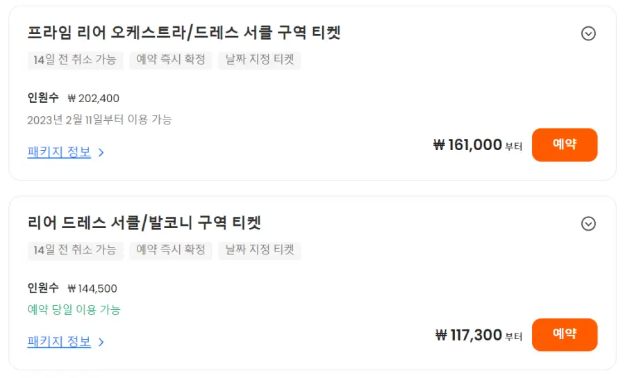 좌석: 프리미엄 구역은 오케스트라 프리미엄 & 드레스 서클 프리미엄 구역을 포함합니다.