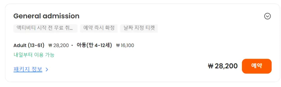 만 13세 이상은 성인과 동일한 요금이 적용됩니다.