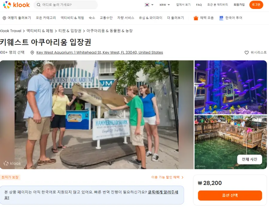 키웨스트 아쿠아리움 입장권은 클룩사이트에서 쉽게 예약하실 수 있으며, 현재 할인된 금액에 이용하실 수 있습니다.
