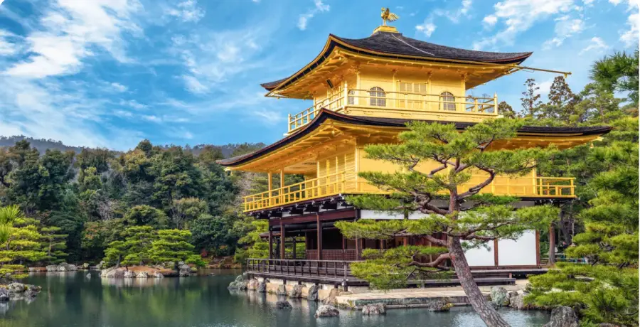 V. 눈부신 금박으로 둘러싸인 금각사를 방문하고, 아기자기하게 가꾸어진 정원을 산책합니다.