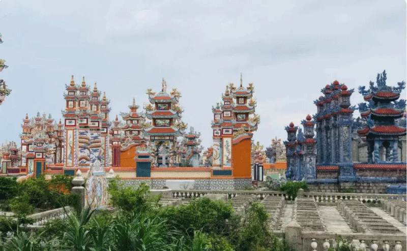후에의 색다른 장소인 "유령의 도시"는 Thuan An Beach 근처의 조용한 마을인 An Bang에 있습니다. 하얀 모래 위에 세워진 형형색색의 건축물이 있는 이 지역 공동묘지는 길가를 따라 3km에 걸쳐 펼쳐져 있습니다. 현지인들은 이곳을 "유령의 도시"라고 부릅니다. "유령의 도시"는 항상 관광객을 충격에 빠뜨립니다. 위풍당당한 석조 사자와 지붕 능선을 장식하는 반짝이는 모자이크 용이 있습니다. 또한 불교, 도교, 천주교, 베트남, 중국 및 서양과 같은 다양한 건축 양식이 혼합되어 있습니다. 심지어 많은 무덤이 Nguyen Kings의 무덤과 Hue 왕궁의 사본을 가지고 있습니다.