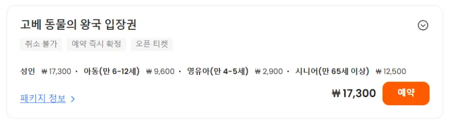 고베 동물왕국 입장권은 클룩사이트에서 쉽게 예약하실 수 있으며, 현재 할인된 금액에 이용하실 수 있습니다. 이 바우처는 온라인 전자 항공권입니다. 인터넷 접속이 가능한 기기에서 바우처를 제시하려면 클룩 앱 또는 웹사이트에 로그인해야 합니다.