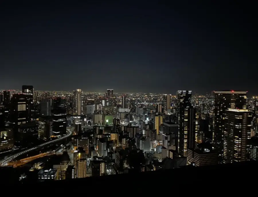 야경은 또 다른 매력을 가지고 있습니다. 일몰이 지나고 밤이 되면, 도시의 불빛이 하늘을 수놓습니다. 이때의 오사카 도시는 밤하늘의 별처럼 반짝이는 고층 빌딩들과 거리의 조명들로 아름답게 빛나게 됩니다.