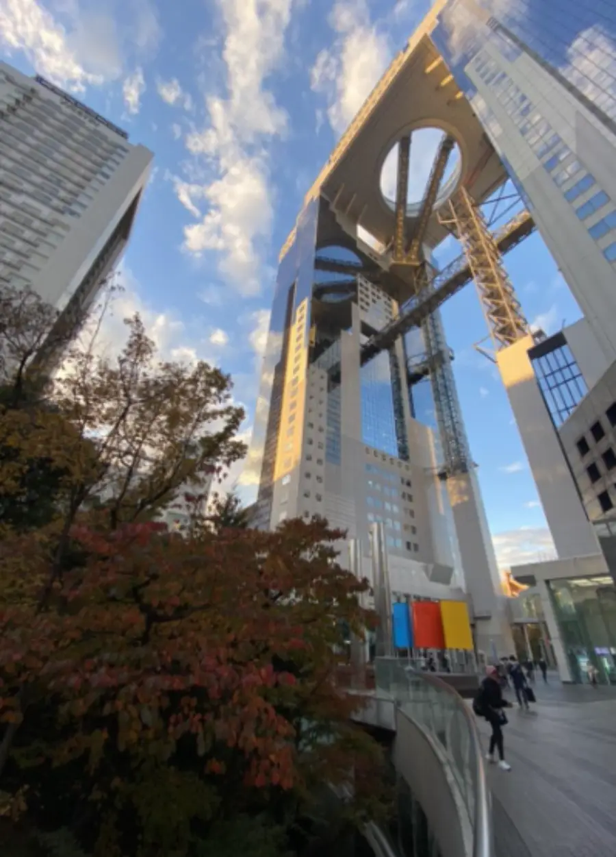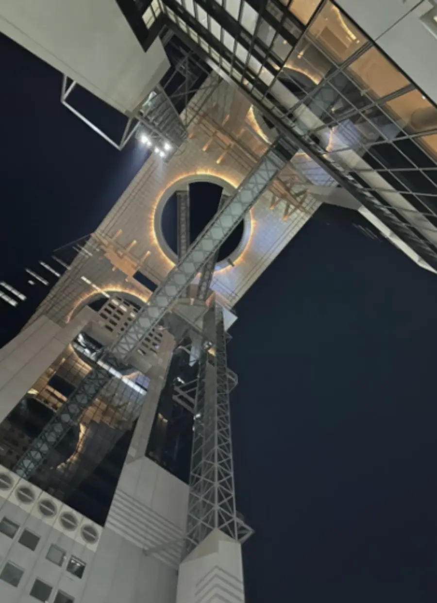 우메다 스카이 빌딩은 두 동의 타워가 하늘로 솟아오르는 모습이 인상적입니다. 그 중간에 위치한 '공중정원 전망대'는 오사카 시내를 한 눈에 볼 수 있는 최고의 장소로, 많은 관광객들이 찾는 명소입니다.